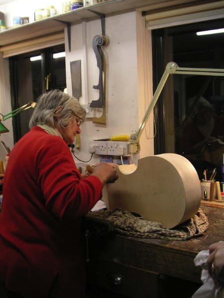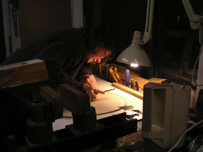 Tuning the back plate of Annas violin based on Il Cannone by Guarnerius of 1743.