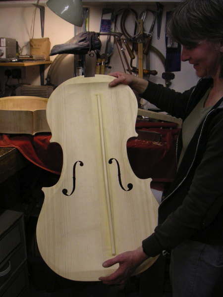 Tuning the back plate of Annas violin based on Il Cannone by Guarnerius of 1743.