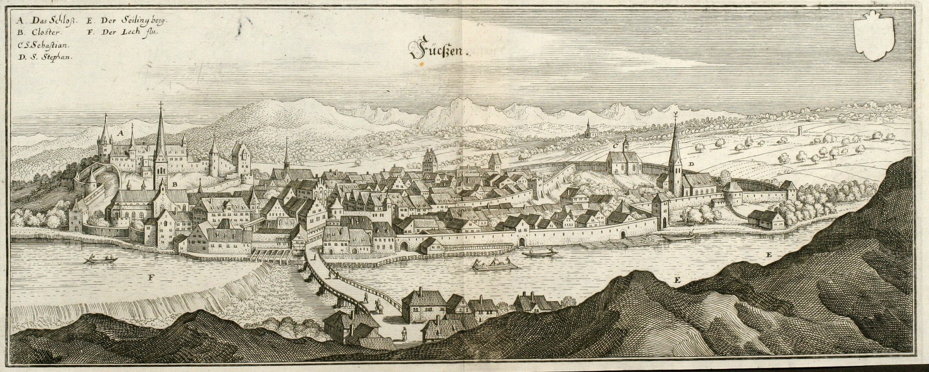 Situated on the Via Claudia, a former Roman road, Füssen was on a route, that until the 1950s, was the major connection between Augsburg and Venice.  Though shallow the River Lech is navigable by raft and joins the Danube providing a trading route to Vienna and Budapest.  By road or water merchants had easy - for the time - access to rich markets to the south-west and the north-east.