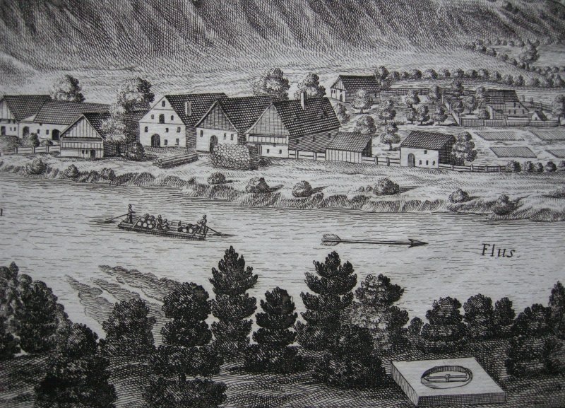 The heavy, bulky wood needed only to be brought down the mountainsides which begin in the foreground of this view just across the river Lech from Füssen, while the river itself afforded easy and gentle transport for the delicate finished instruments towards their main markets in England, France, the Netherlands and Germany.